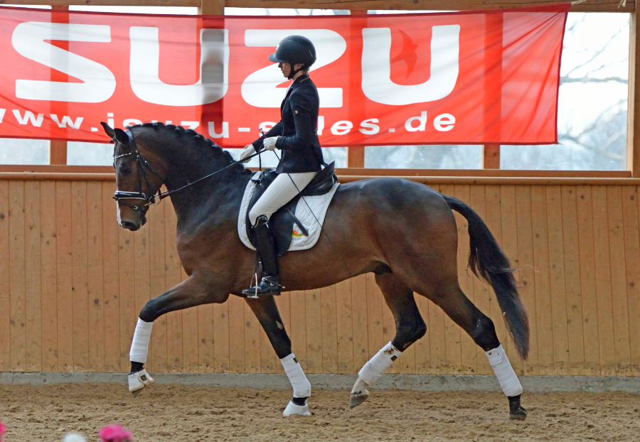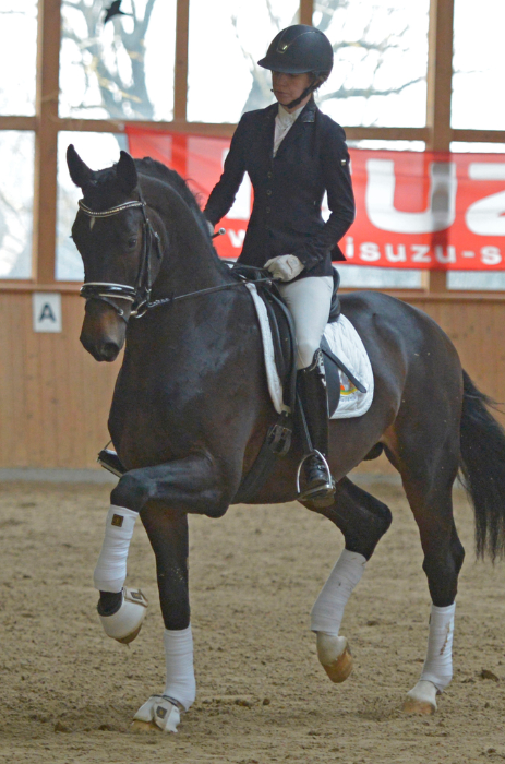 Der Süddeutsche Prämienhengst De Sandro konnte mit hohen Noten in den Grundgangarten (8,0 in Trab und Galopp und eine 9,5 für den überragenden Schritt) überzeugen. Die beiden Fremdreiter bescheinigten ihm eine Rittigkeit von 9,25. Damit erreichte er unter den 31 Mitbewerbern den dritten Platz mit einer dressurbetonten Endnote von 8,56.
