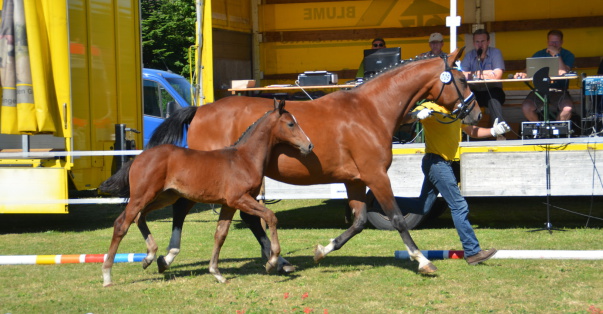 Die drei im Typ überragenden und bewegungsstarken Fohlen, präsentierten sich dem kritischen Richtergremium mit viel Charme und Ausstrahlung und konnten so auf ganzer Linie überzeugen. Das Stutfohlen aus einer Fürstenreich-Mutter (Züchter: Fam. Brodhecker) erzielte sechs mal die Traumnote 9,0 und beendete die Prüfung als überragende Drittplatzierte. Die beiden Hengstfohlen rangierten auf den Plätzen zwei und drei. Zweiter wurde das Hengstfohlen aus einer Stute von Laurice (Züchter: Fam. Biederbeck) und Dritter wurde das Hengstfohlen aus einer Stute von Dumont (Züchter: Fam. Biederbeck). Wir freuen sehr und gratulieren den Züchtern zu diesen wirklich tollen Fohlen und wünschen viel Glück beim Championat in Lienen.