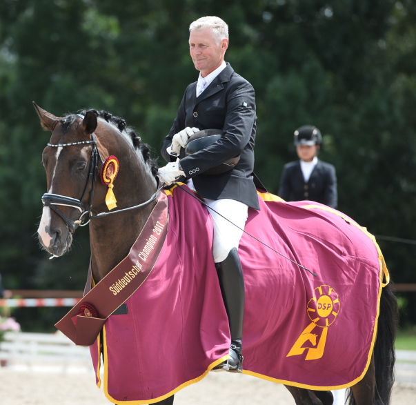 Er hat es wieder geschafft! Nach seinem furiosen Sieg 2016 in der Klasse der 3-Jährigen, unter seiner Reiterin Leandra Hahn, präsentierte sich DSP De Sandro (Decurio - Samba Hit) auch im diesjährigen Championat von seiner spektakulären Seite. Unter seinem routinierten Reiter Volker Brodhecker, sorgte der beeindruckende Hengst aus der Zucht von Hans-Adolf Lembke erneut für Aufsehen und manifestierte so auch in der Klasse der 4-Jährigen seine absolute Champion-Qualität.