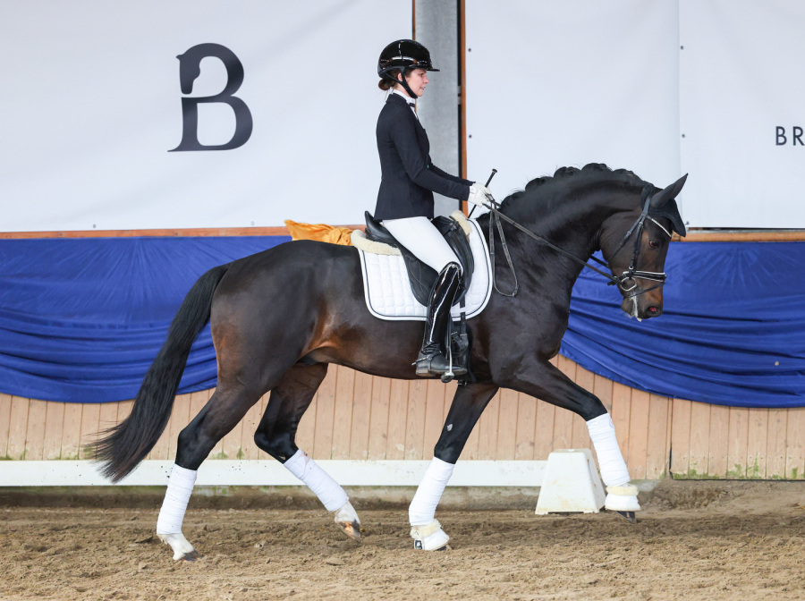 Fontainebleau l'amis bemerkenswerter Auftritt war allerdings nicht das einzige Highlight des Tages. Unser 4-facher DSP-Champion und Top-Vererber DSP De Sandro (Decurio x Samba Hit / Züchter: Adolf Lembke) konnte seine Qualität nach einer längeren verletzungsbedingten Pause erstmals wieder vor großem Publikum unter dem Sattel zur Schau stellen. Unter Bereiterin Leandra Hahn präsentierte sich der Ausnahmehengst in gewohnt spektakulärer Manier und es war einfach eine Freude ihn endlich wieder live in Aktion zu erleben. Eine tolle Vererberstudie boten dann auch seine Töchter Dalina, sowie die Vollgeschwister Große Freude und Deine Freude, welche allesamt aus der Zucht der ZG Brodhecker stammen. Die erst 8-jährige Deine Freude (DSP De Sandro x Freudenstern) war bereits 7-jährig mit Ausbilderin Giulia Gasztecki international siegreich in der Schweren Klasse und startete auch in die Turniersaison 2025 gleich erfolgreich durch.
