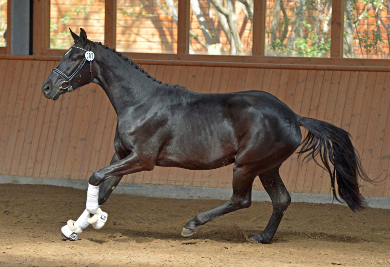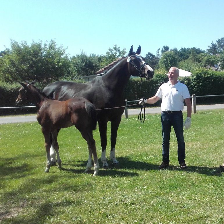 Mit einem hervorragenden zweiten Platz qualifizierte sich ein DSP De Sandro Hengstfohlen aus einer Sir Calypso Mutter (Züchter: Volker Brodhecker), das die Prüfung durchweg mit hervorragenden 9er-Noten beendete. Wir sind total begeistert, denn dies ist mittlerweile das sechste DSP De Sandro Fohlen, dass sich innerhalb der ersten drei Jahrgänge für Lienen qualifizieren konnte. Eine wirklich tolle Quote, die auch die Vererberqualität unseres dreifachen Süddeutschen Champions immer wieder aufs Neue in den Fokus stellt.