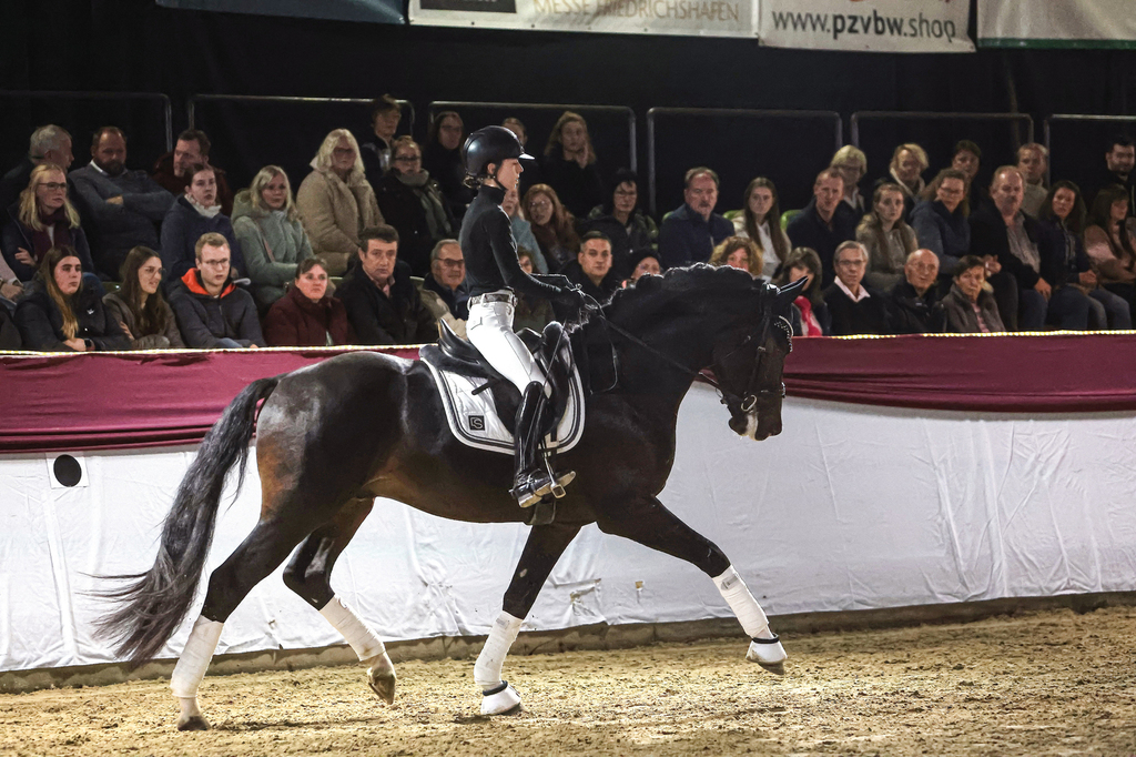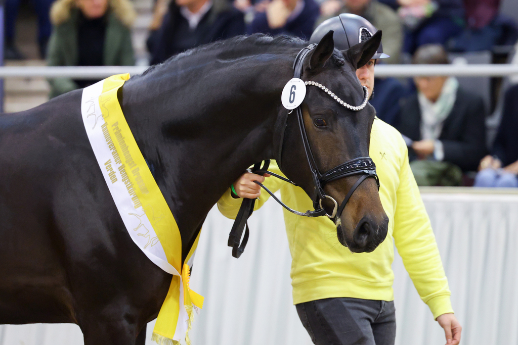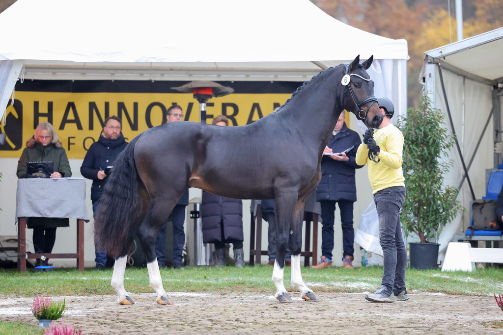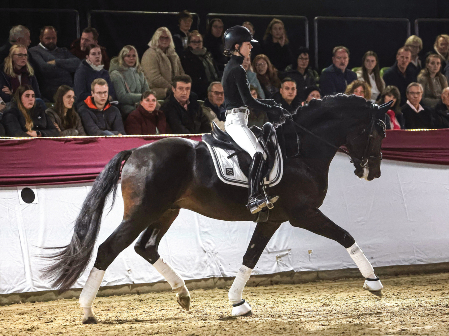 Ausgestattet mit einer überragenden Übersetzung, maximaler Elastizität und einer optimalen Schwungentfaltung, präsentierte sich der elegante Hengst während der gesamten Körveranstaltung auf beeindruckende Weise und wurde verdientermaßen mit dem Prädikat "Prämienhengst" gekört. Auch seine erste Präsentation unter dem Sattel auf der Burghof-Hengstschau 2025, meisterte der junge Hengst bravourös.