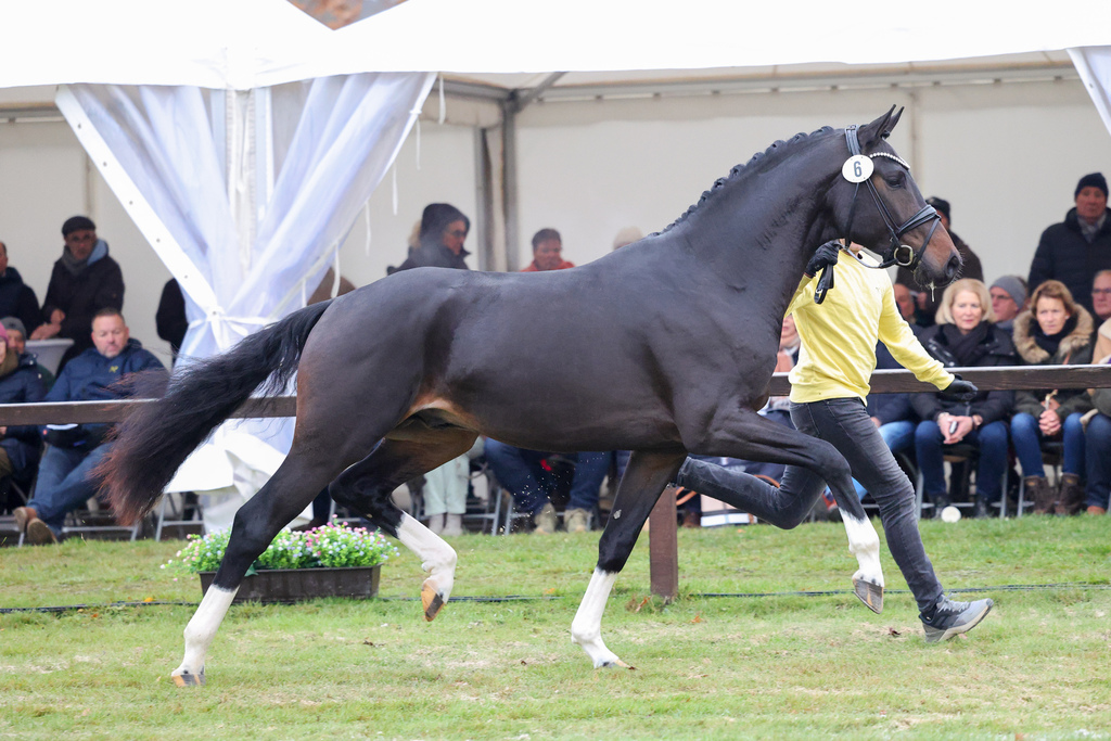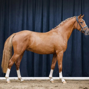 Mit Fontainebleau l'ami freuen wir uns Ihnen eine ganz besondere züchterische Offerte präsentieren zu können. Dieser hochmodern aufgemachte For Romance I x Christ Nachkomme aus der Zucht von Thomas Ehrengut manifestierte seine herausragende Qualität bereits im Fohlenalter, wo er auf der Fohlenschau des Altenburger Pferdezuchtverbands für Furore sorgte. Mit 59,5 (5x 10, 1x 9,5) von 60 möglichen Punkten, erzielte er die beste Bewertung, die jemals ein Fohlen auf dieser beliebten Schau erzielen konnte. Dieser Ausnahmehengst besticht neben seiner bedeutenden Qualität auch durch seine hohe Leistungsbereitschaft, die der junge Nachwuchsvererber auch bei seiner Körung in Verden (2024) beeindruckend zur Schau stellte. Dort begeisterte er sowohl das Fachpublikum als auch die Körkommision.