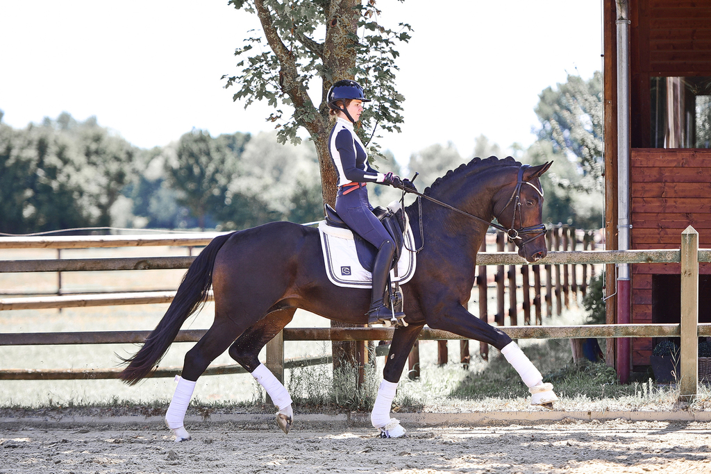 Fontainbleau l'amis Mutter Calimera ist eine Vollschwester des Grand Prix-erfolgreichen Hengstes Cadeau Noir, der sich 2024 unter Moritz Treffinger Team-Gold bei der U25-EM in Österreich sichern konnte.